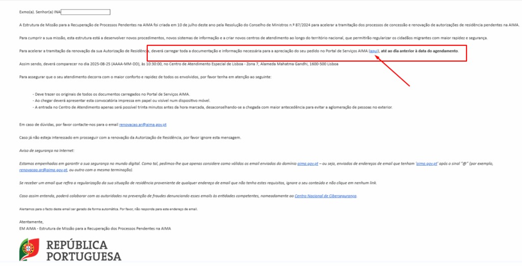 IMPORTANTE: Antes de ir a AIMA terá que carregar todos os documentos em PDF e em alta qualidade no PORTAL da Renovação presencial. Caso não saiba fazer esse processo entre em contato com nosso escritório.